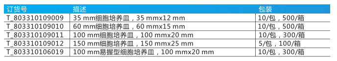 • 根据实验需要提供多种培养皿规格:35 mm、60 mm、100 mm、150 mm