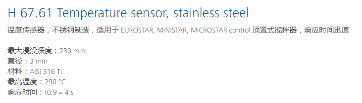品名: IKA温度传感器H 67.61 Temperature sensor, stainless
