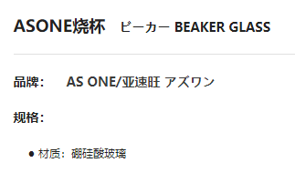 品名: 亚速旺 ASONE烧杯 100ml 1个