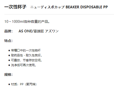 品名: 亚速旺 一次性烧杯 200ml 1个