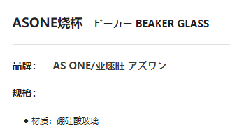 品名: 亚速旺 ASONE烧杯 10ml 1个