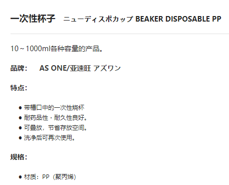 品名: 亚速旺 一次性烧杯 300ml 1个
