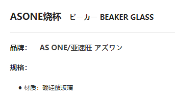 品名: 亚速旺 ASONE烧杯 300ml 1个