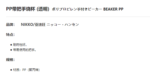品名: 亚速旺 聚丙烯带把手烧杯1000ml(1个)