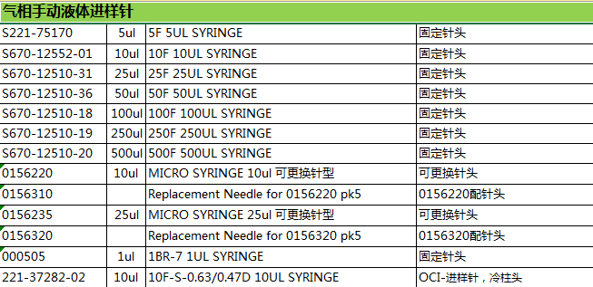 - 品名: 气相色谱手动液体进样针
