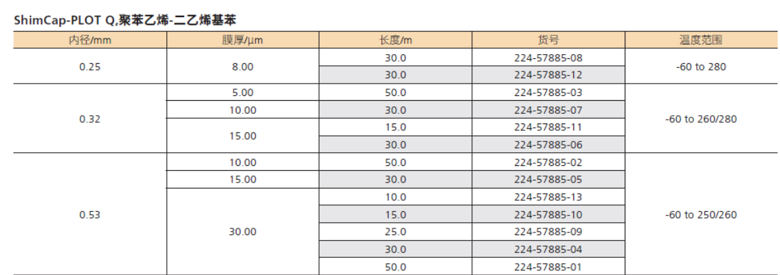 品名: 岛津ShimCap-PLOT Q气相毛细管色谱柱