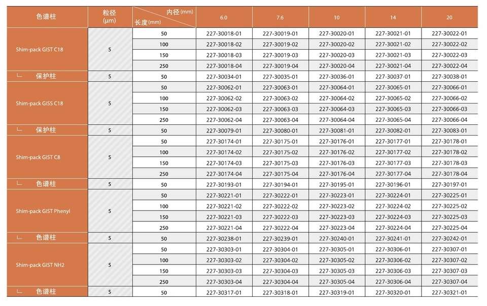 品名: 岛津Shim-pack GIST Phenyl 制备柱