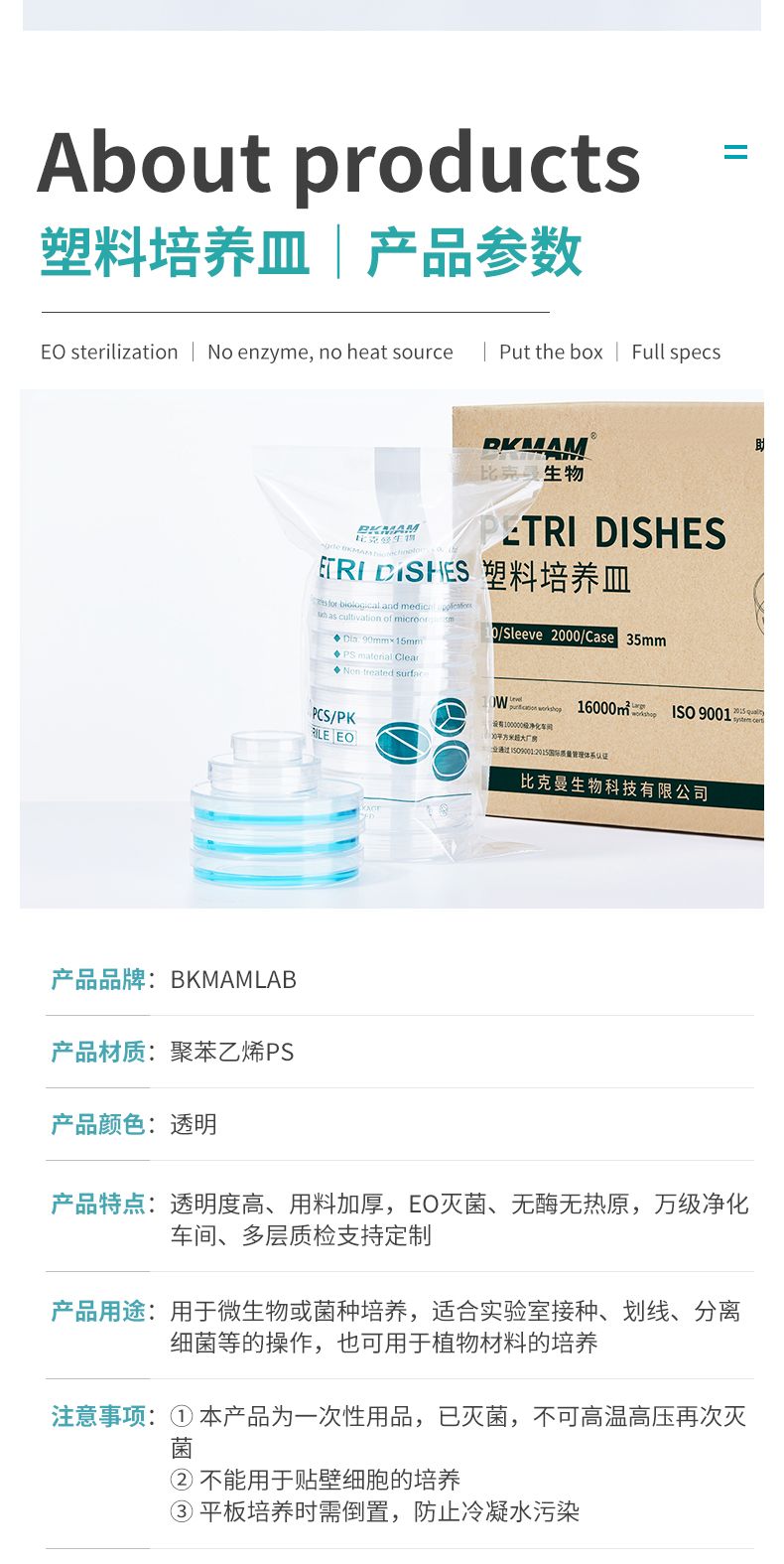 品名: bkmamlab 一次性塑料圆形培养皿90mm*15(纸塑袋,12克) 经济款